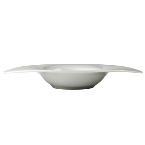 Alquiler de plato hondo porcelana blanca de 26cm de diámetro, modelo RISSO de la marca de porcelana valenciana Porvasal, un plato con un diseño moderno, perfecto para emplatar desde platos principales, postres o cualquier tipo de comida. Cuenta con un ala que va de los 3 a los 7cm, un cuenco en forma oval con una capacidad de 250ml. Tiene una altura de 4cm aproximadamente. Resistencia y dureza de máxima calidad.