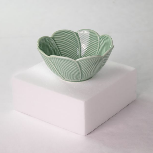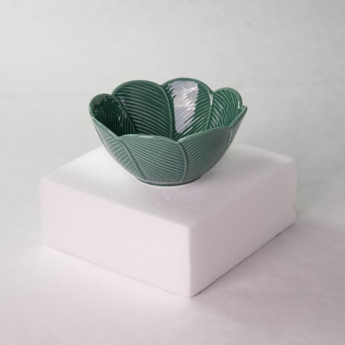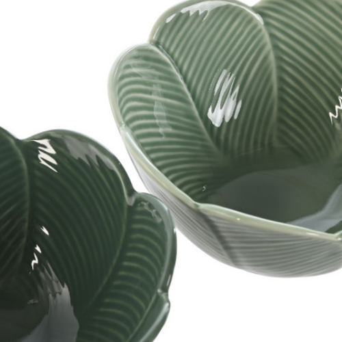 Bol redondo 16×16 h7cm HOJAS RELIEVE porcelana verde (surtidos)