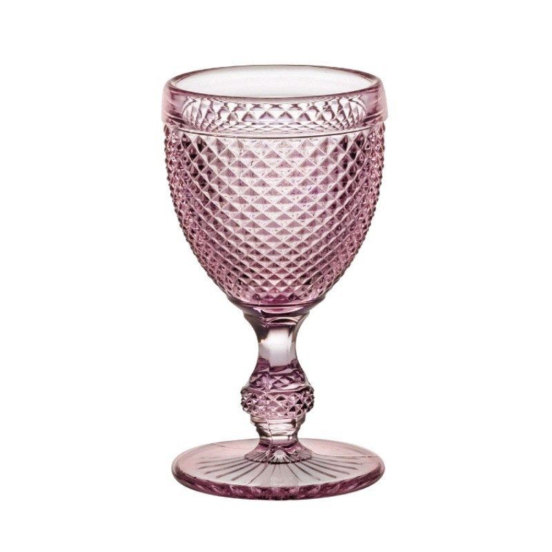 Alquiler de la copa modelo PICOS ROSA 32.5cl. de vidrio robusto, grabado de picos, aporta un toque delicado y elegante a tu mesa, perfecta para cualquier tipo de montaje.