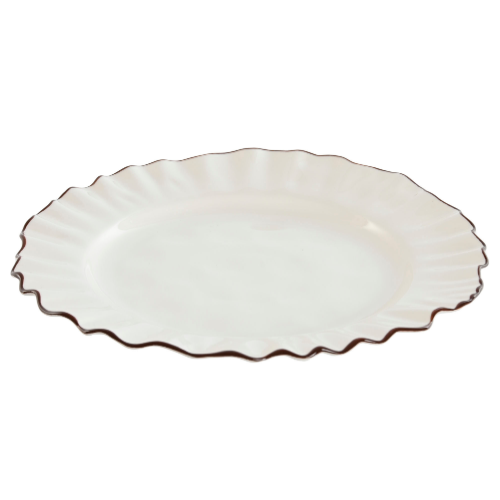 Plato llano 26cm RIZADO FILO MARRON porcelana blanca